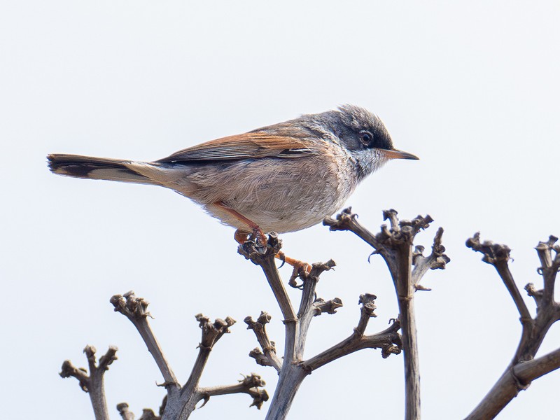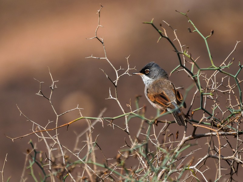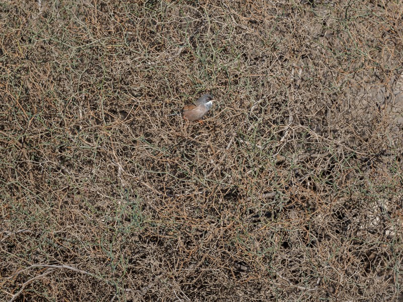 Das Fotografieren der wuseligen Brillengrasmücken ist sehr schwierig, sie huschen ständig, meist in Dornenbüschen, hin und her. Namensgebend ist der weiße Augenring.