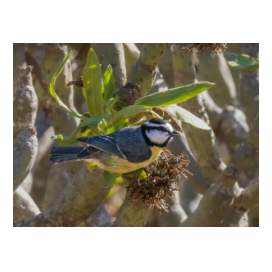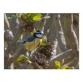 Die Blaumeisen der Kanaren haben ein schwarzes Köpfchen, jede Insel hat eine endemische Unterart. So haben zum Beispiel den weißen Flügelstrich nur die Meisen auf Lanzarote und Fuerteventura. Die Blaumeisen bevorzugen Barrancos mit höherem Gebüsch.
