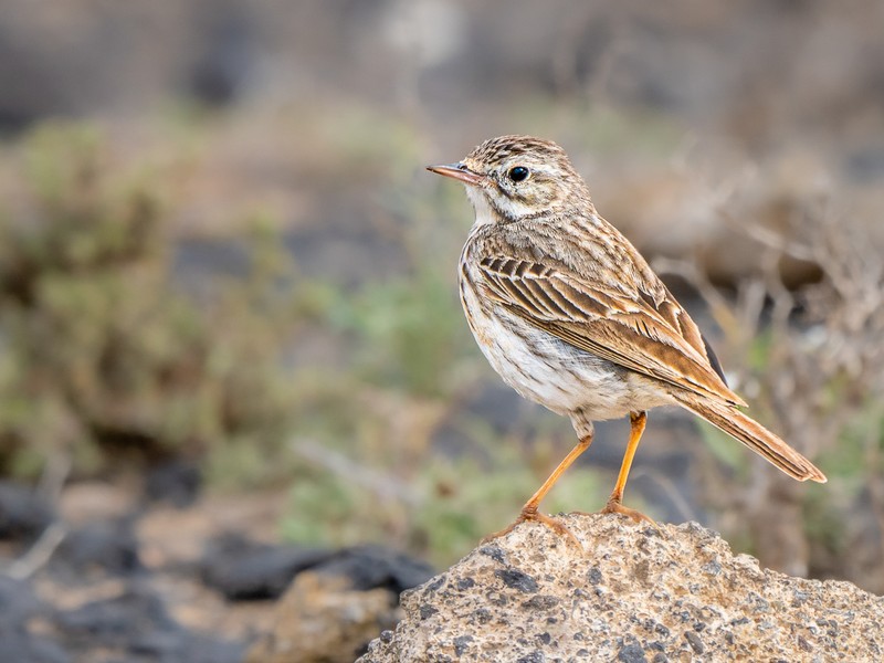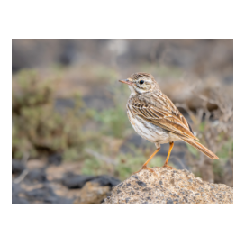 Der Kanarenpieper ist einer der häufigsten Vögel auf Lanzarote und überall anzutreffen. Mit dem typischen "Piepen" macht er sich bemerkbar, und man kann ihn schnell laufend am Boden beobachten, wo er auch versteckt zwischen Pflanzen sein Nest baut.