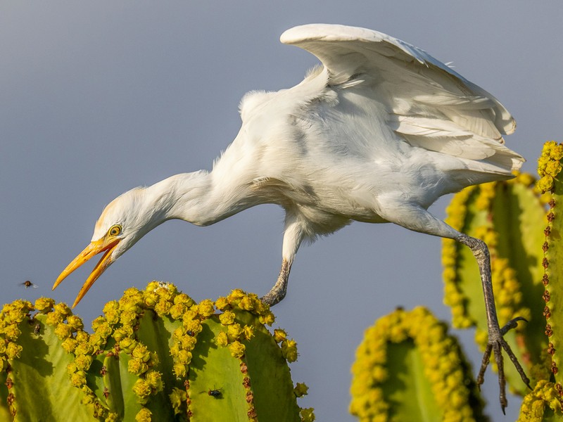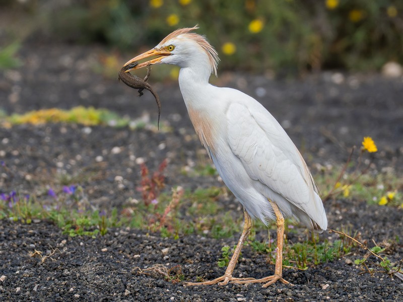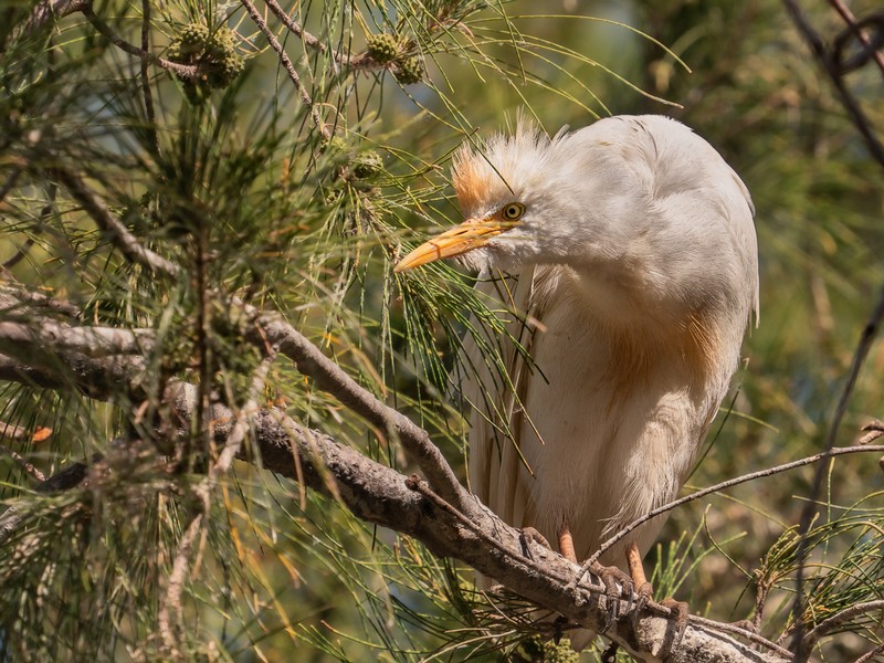 Lanzarote ist die einzige Kanareninsel, auf der dieser kleine Reiher brütet, in der Hauptstadt Arrecife hinter dem Busbahnhof! Mitten in der Stadt befindet sich ein kleiner umzäunter Bereich mit ein paar Kanarischen Kiefern. Für mich natürlich eine tolle Gelegenheit! Aber auch sonst beobachte ich den manchmal witzig aussehenden Vogel gerne, wobei er beim Fressen und Futtersuchen zum Raubtier mutiert! ;-) Im Prachtkleid während der Balz verfärben sich Männchen und Weibchen, das Männchen aber extrem! Die Federn werden teilweise leuchtend orange und die Augen knallrot.