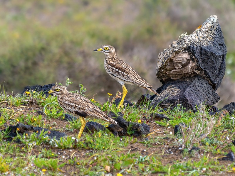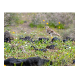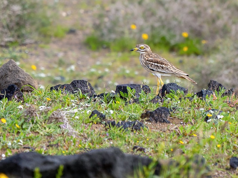 An den großen Augen des Triels (es gibt eine endemische Fuerteventura/Lanzarote-Unterart) erkennt man, dass es sich um nachtaktive Tiere handelt. Auch sind sie durch ihr Gefieder sehr gut in den Sand- und Steinwüsten getarnt. Beides zusammen dürfte der Grund dafür sein, dass ich diese Vögel erst einmal gesehen habe.